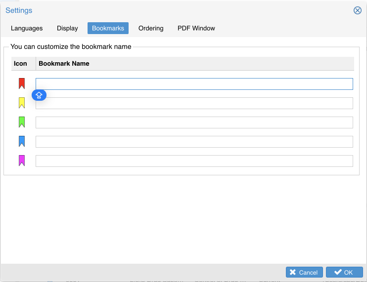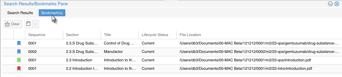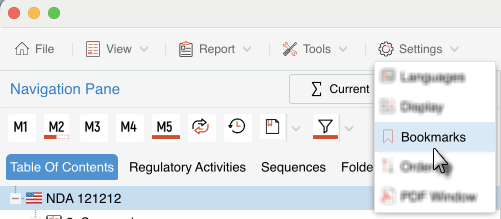 On eCTD View window, Select Bookmarks from the menu Settings to open Bookmarks settings.