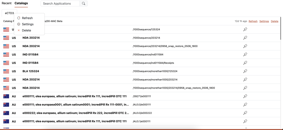 : Right click the catalog name tab and select 'Refresh' or Click 'Refresh' on the right top of the catalog list: Refresh the eCTDs information in the current Catalog.