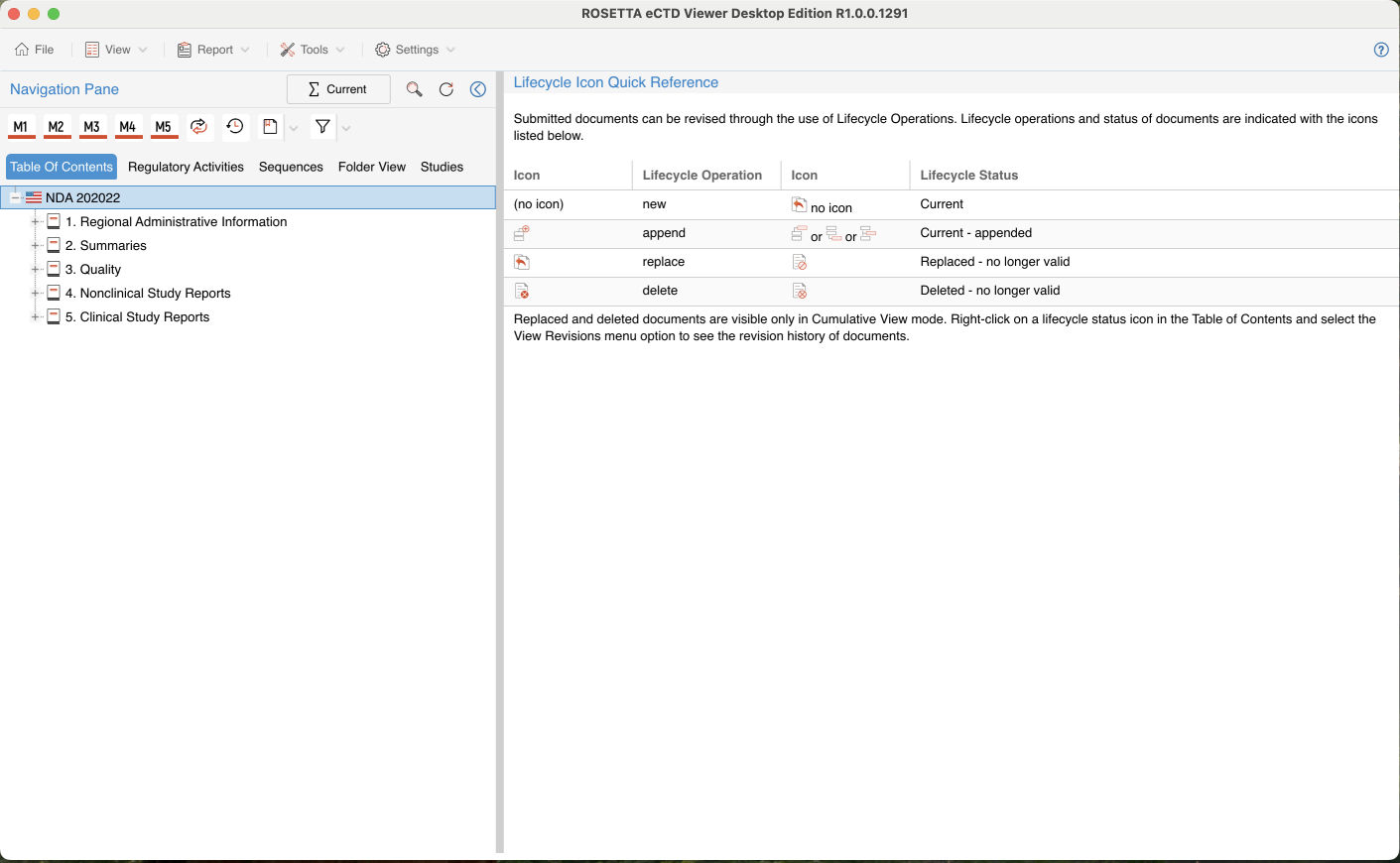 The opening eCTD application/Submission displays default under Table of Contents View in eCTD View Window.(About how to switch views, please click here: eCTD Views)