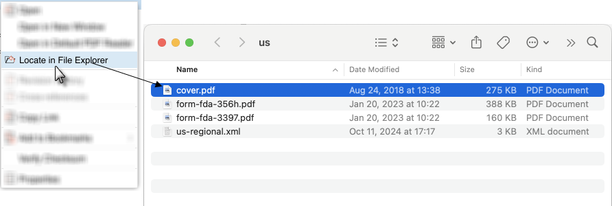 Select "Locate in File Explorer" from right-click menu to locates the file to windows file explorer.