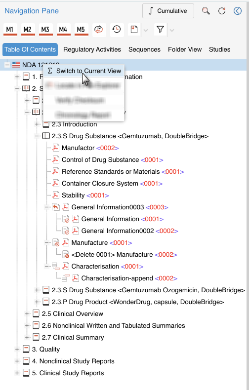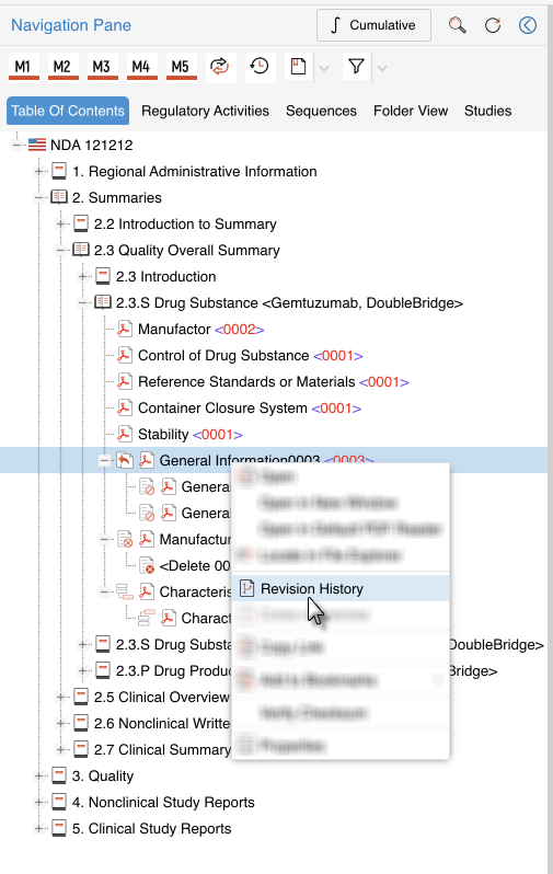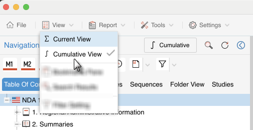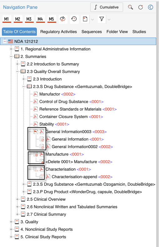 The Cumulative View shows all submitted files, including replaced or deleted leafs and/or deleted operations.
