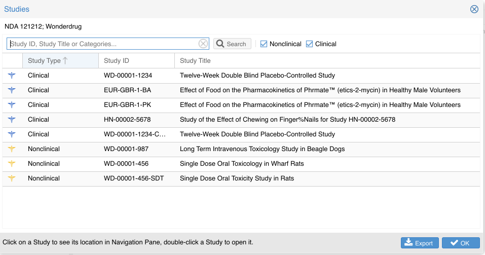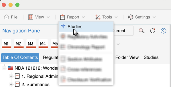 The Studies report provides a collection of research study report STF files contained in the currently opened eCTD .Including reports of non-clinical study reports and clinical study reports.
