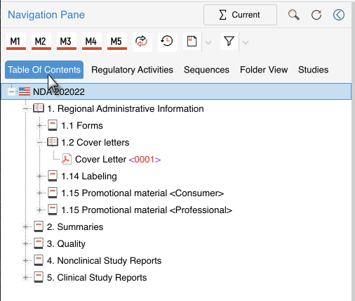 Turn on/ Turn off Modules Filter. Hide or display the corresponding modules in eCTD directory structure. |