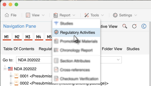 On Navigation Pane, click on the tab Regulatory Activities View to switch to regulatory activities view.